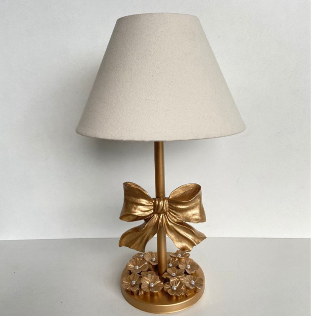 Abajur Luminária Menina Laço e Flores Dourado Bebê