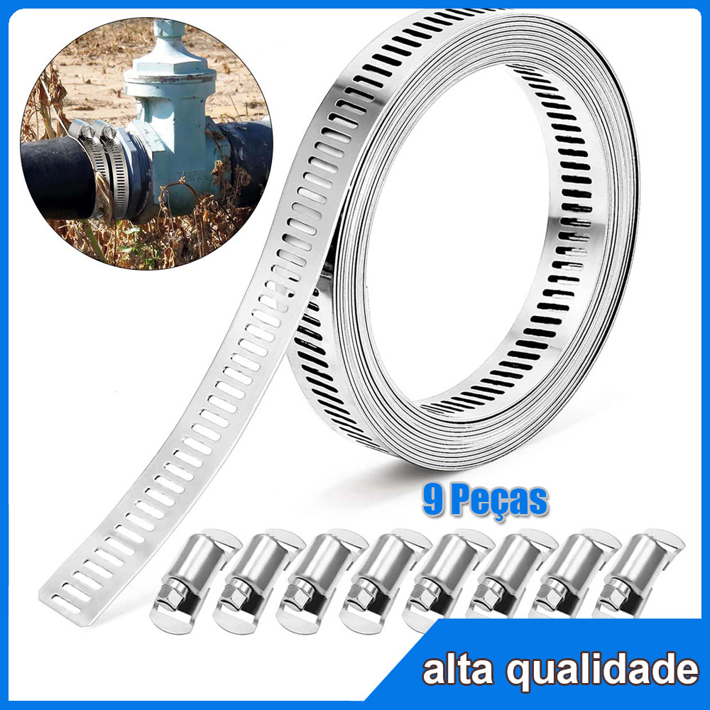 Abraçadeira Rosca Sem Fim Fita Perfurada rolo Faixas para tubos de aço inoxidável 4m C/ Clip Aperto