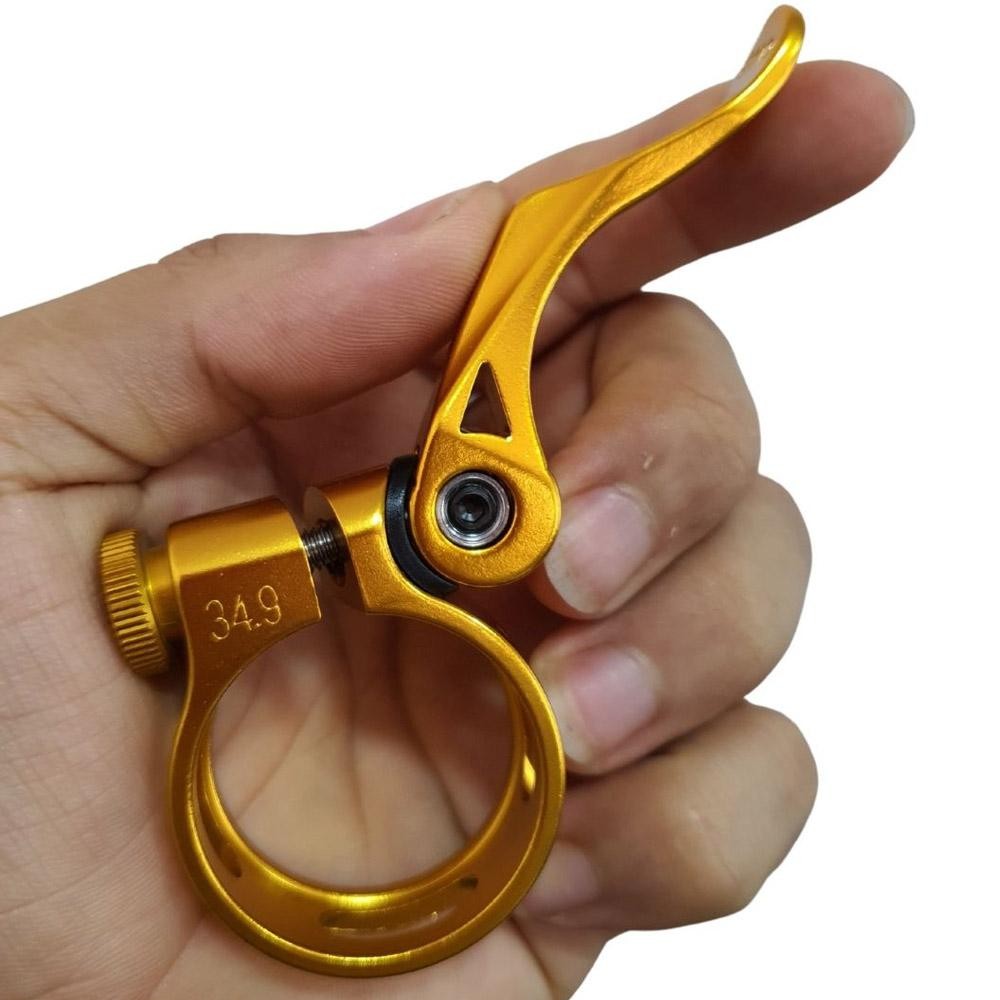 Abraçadeira Selim Alum. 34,9mm C/Bloc. Dourado Material desenvolvido para oferecer leveza para o ciclista, aliado a proporção de segurança do sinalizador LED à prova d'água. Indicações de uso: Bicicleta em geral Passeio Noturno Cicloturismo Mountain Bike Especificações: Medida: 34,9 mm Material: Alumínio Pintura: Anodizada Cor: Dourado Garantia: 3 meses contra defeitos de fabricação Marca: Kapa Bikes