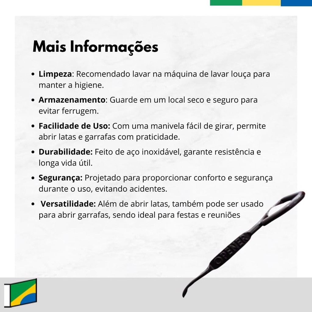Abridor De Latas Opener Preto Maxi Rubber ....................................................................... INFORMAÇÕES SOBRE O PRODUTO ..................................................................................................................................... Abridor de Latas Opener Preto Maxi Rubber, um utensílio indispensável na sua cozinha. Com um design moderno e elegante na cor preta, este abridor é perfeito para abrir facilmente todos os galões e latas disponíveis no mercado, tornando suas tarefas culinárias muito mais simples. Além de sua função principal, ele também possui a versatilidade de abrir garrafas, sendo ideal para festas e reuniões. Fabricado pela renomada marca Maxi Rubber, este produto é novo e garante durabilidade e eficiência. O modelo foi projetado para proporcionar conforto e segurança durante o uso, evitando acidentes. Não perca a oportunidade de facilitar seu dia a dia com este prático abridor, que combina funcionalidade e estilo em um só produto. DÚVIDAS FREQUENTES ..................................................................................................................................... Pergunta: Como é embalado o produto? Resposta: Todos os nossos produtos vendidos são embalados em caixas lacradas ou plástico stretch. Em respeito ao meio ambiente 90% das caixas são reutilizadas. Pergunta: Quem faz a entrega? Resposta: A entrega é terceirizada, feita via CORREIOS ou TRANSPORTADORA. Pergunta: O envio é feito em quantos dias? Resposta: Nós enviamos o seu pedido no prazo máximo de 24 horas após a confirmação de sua compra, sendo um dos envios mais rápidos da plataforma. Pergunta: Os produtos são novos ou usados? Resposta: Todos os produtos que trabalhamos são novos e com qualidade garantida. .....................................................................................................................................