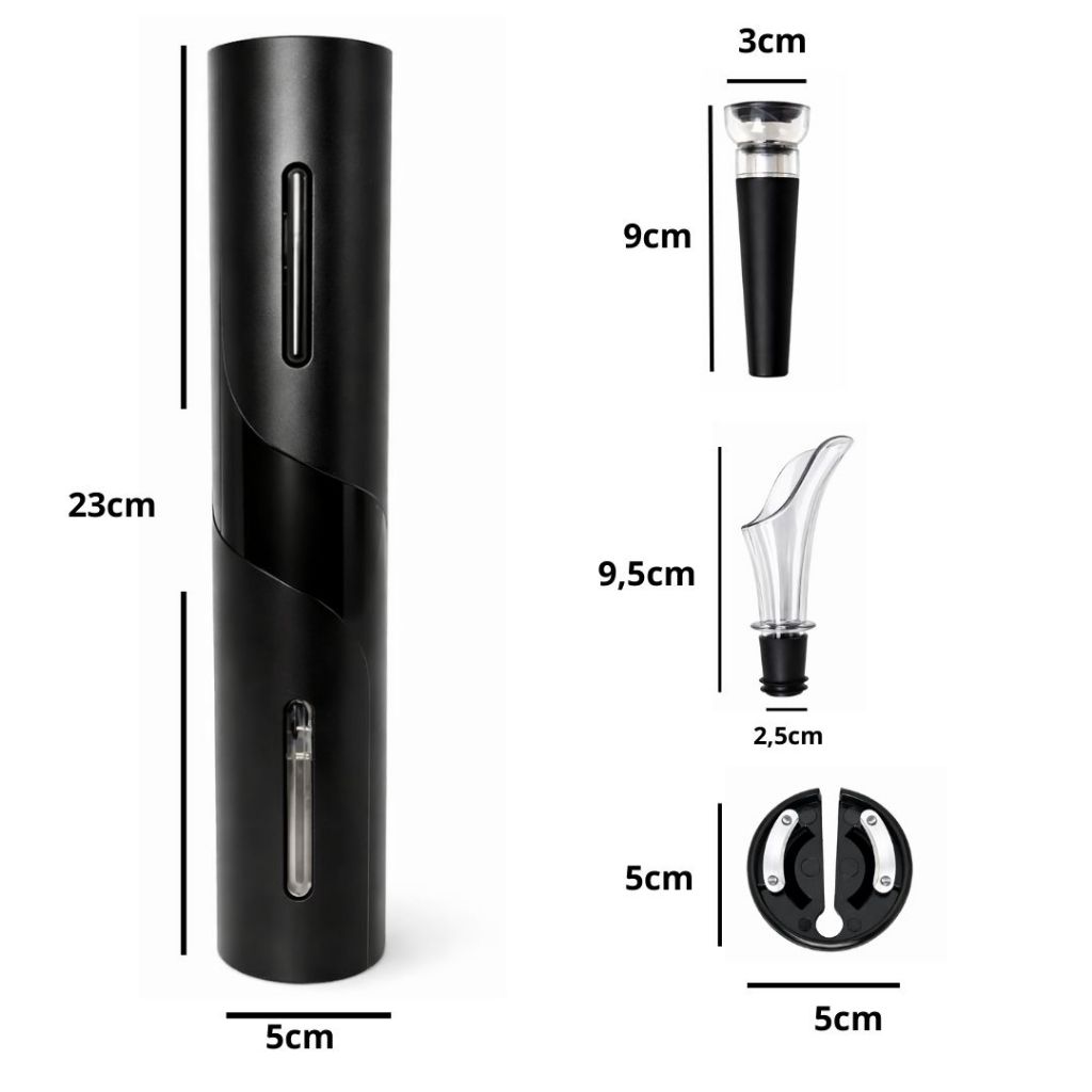 🍷 Kit Abridor de Vinho Elétrico Automático 4 em 1 – Completo, Elegante e Prático Transforme sua experiência ao abrir e servir vinhos com o Kit Abridor de Vinho Elétrico Automático 4 em 1, desenvolvido para quem valoriza praticidade, sofisticação e desempenho. Ideal para uso doméstico, jantares especiais, presentes e apreciadores de vinho. ⭐ Principais Benefícios e Diferenciais Abridor de Vinho Elétrico Automático: remove a rolha em poucos segundos com apenas um toque, sem esforço. Sistema rápido e silencioso: abertura suave, limpa e sem quebrar a rolha. Design moderno e ergonômico: elegante, combina com qualquer ambiente. Fácil de usar: ideal até para quem não tem experiência com abridores tradicionais. 🍷 Acessórios Inclusos – Kit Completo 4 em 1 ✔️ Abridor de Vinho Elétrico ✔️ Cortador de Cápsula – corte preciso e seguro do lacre ✔️ Aerador de Vinho – realça aromas e melhora o sabor ✔️ Bomba de Vácuo – conserva o vinho por até 7 dias após aberto 🔒 Preservação e Qualidade A bomba de vácuo reduz a oxidação, mantendo o vinho fresco por mais tempo, ideal para quem não consome a garrafa inteira de uma vez. 🎁 Ideal para Presente Presentes sofisticados Dia dos Pais, Natal, Aniversários Casamentos, confraternizações e jantares especiais 📌 Especificações Gerais Tipo: Abridor de vinho elétrico automático Funcionamento: 4 Pilhas AA (não inclusas, conforme modelo) Material: Plástico resistente + componentes metálicos Uso: Vinhos com rolha natural ou sintética