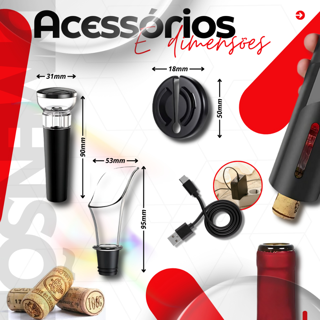 Abridor De Vinho Elétrico Saca Rolhas USB Recarregável Automático Kit 4 Peças Premium
