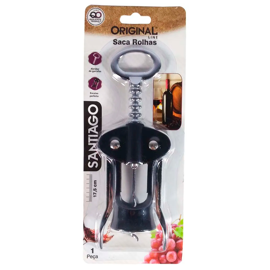 Abridor Saca Rolhas Reforçado Garrafa Vinho Metal Cozinha Cromado Aço Inox Prático Rápido
