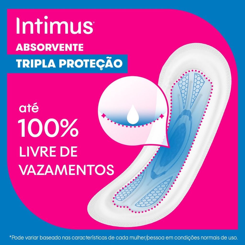 Absorvente Intimus Tripla Proteção Fluxo Médio Cobertura Seca Sem Abas Com 8 Unidades