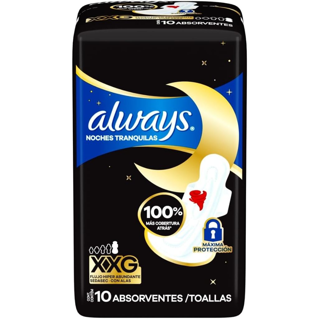 Absorvente Noturno Always Noites Tranquilas Cobertura Suave Hiper Longo Com Abas Com 10 Unidades
