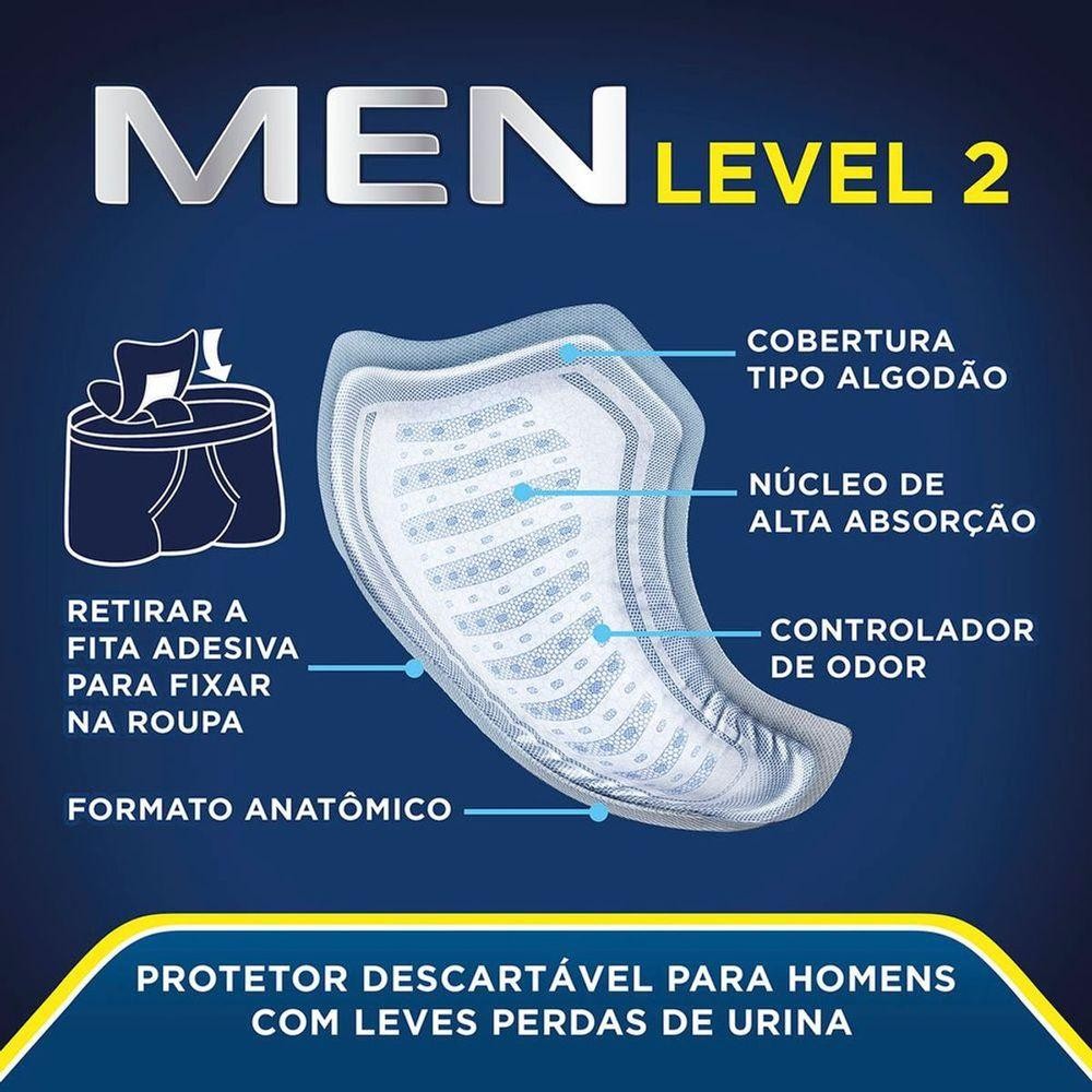 **Produto Original** Protetor masculino TENA MEN descartável diário para homens ativos com gotejamentos de urina. Proporcionando alta e eficaz proteção, absorção e segurança para desfrutar das atividades do dia-a-dia, inclusive durante a prática de esportes. C/tecnologia Secure Absorption - proporciona absorção segura para homens com leve a moderada perda de urina; Núcleo ultra absorvente - retém os escapes de urina de forma eficiente; Controle de odor - Controla e inibe odores indesejáveis; Ajuste ao corpo - possui formato confortável adequado ao corpo masculino. Embalagem individual e fita adesiva para fixar na roupa intima.