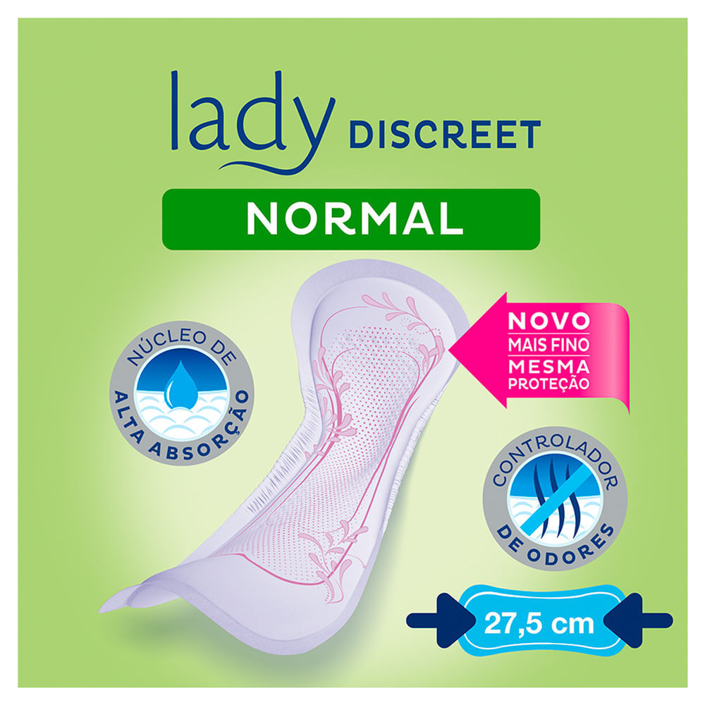 Absorvente Tena Lady Discreet Normal Tena Lady é uma linha exclusiva para mulheres, com absorventes finos e discretos, desenhados especialmente para gotejamento e escapes de urina. Indicado para usuár