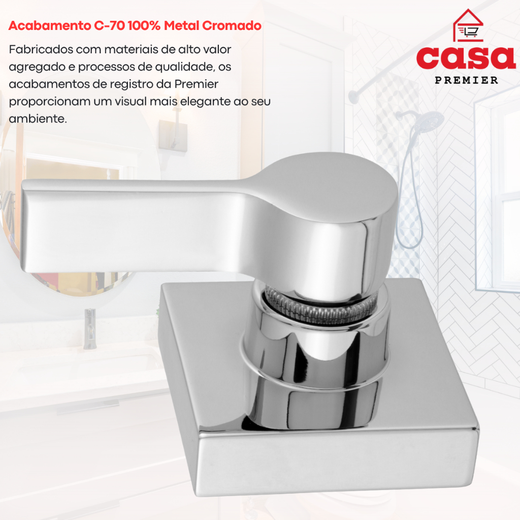 Seja Bem vindo a Loja Oficial da Casa Premier Shopee. ------------------------------------------------------------------------------------------ Descrição do Produto: Acabamentos de Registro C70 padrão Deca (16 estrias) Fabricados com materiais de alto valor agregado e processos de qualidade, os acabamentos de registro da Premier proporcionam um visual mais elegante ao seu ambiente. O volante é todo em metal, seguindo o padrão das marcas mais nobres do mercado. Valorize a sua casa com acabamentos de registro de qualidade em metal cromado. - Canopla Quadrada (54mm x 54mm x 15mm) - Bitola: ½, ¾ Polegada - Compatível com o padrão Deca - Não serve para Docol e Fabrimar ------------------------------------------------------------------------------------------ - ATENÇÃO PARA OS DADOS DE ENTREGA: - Confira o seu endereço de entrega cadastrado, não alteramos endereços após a compra. - HORÁRIO DE ATENDIMENTO: - De Segunda à Sexta das 08h00 às 18h00 Garantia do vendedor: 3 meses
