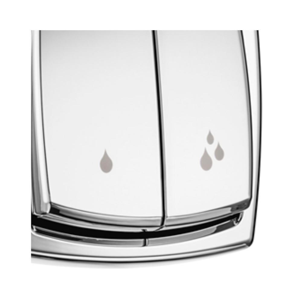 SOBRE O PRODUTO Um banheiro econômico, com design que compõe o ambiente e alta durabilidade. O principal benefício dos produtos Salvágua é a economia durante o uso. Com duas teclas de acionamento, ele permite uma descarga parcial e outra completa, para resíduos sólidos. Como você pode escolher qual a intensidade de água vai utilizar, o produto gera uma economia de 60% durante o uso. Vale lembrar que os nossos acabamentos são intercambiáveis, ou seja, você pode trocá-los sempre que quiser, sem quebrar paredes ou realizar grandes manutenções. O acabamento é como uma capa para seu sistema de descarga, ou seja, você pode manter o produto dentro da parede, apenas trocar a parte externa para modificar o design do seu ambiente. DIFERENCIAIS - Economia de água: A tecnologia Salvágua permite que o acionamento do sistema de descarga seja realizado por meio de duas teclas: parcial e total. Reduz em até 60% o consumo de água. - Garantia Toda Vida: A primeira marca de metais sanitários brasileira a assegurar GARANTIA TODA VIDA para os produtos instalados em residências. INFORMAÇÕES TÉCNICAS - Acabamento: Polido - Cor: Cromado - Tipo de Base: Válvula de descarga - Tecnologias: Acabamento biníquel, Salvágua, Garantia Toda Vida - Conteúdo da embalagem: 2 parafusos,1 acabamento e 1 manual de instalação. - Composição: Ligas de cobre e plásticos de engenharia. - Acionamento: Botão - Tipo de Instalação: Parede DIMENSÕES - Comprimento: 44mm - Altura: 131mm - Largura: 109mm - Peso: 0,223kg GARANTIA Garantia para toda vida contra defeito de fabricação. SOBRE O FABRICANTE A Docol tem um DNA criativo e inovador, buscando surpreender as pessoas e provocar novas sensações e experiências. A empresa utiliza tecnologia e o pensamento original para desenvolver soluções inéditas e entregar ao mercado produtos que proporcionem o bem-estar dos consumidores, sem deixar de lado a boa estética e o cuidado com o meio ambiente.