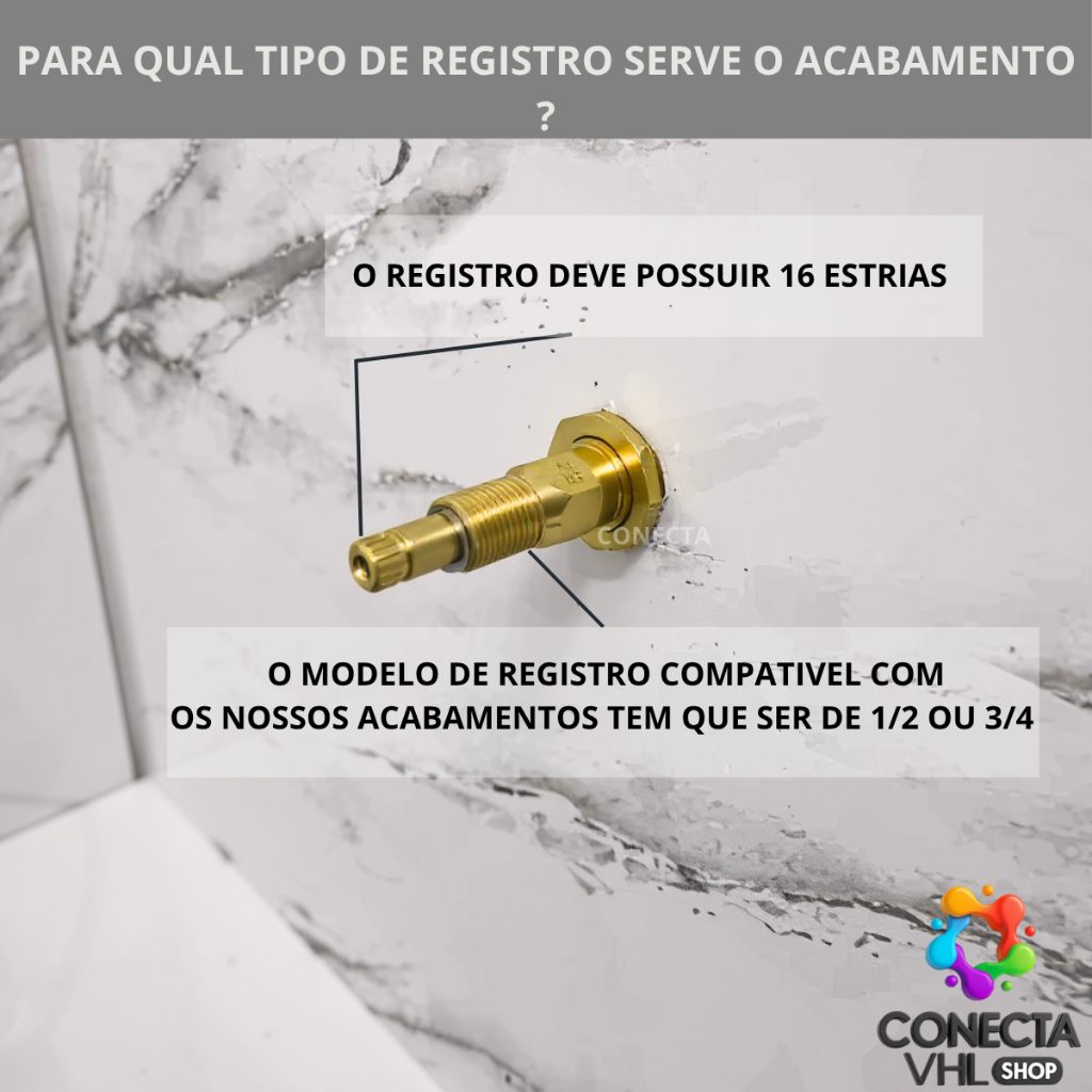 ✨ Acabamento Registro Pressão Gaveta Padrão Deca C-40 Preto Light CONECTA VHL SHOP - ABS 1/2, 3/4 e 1 Polegada (16 Estrias) ✨ �� DESTAQUES CONECTA VHL SHOP: Compatibilidade Padrão Deca: Perfeito para registros de 1/2, 3/4 e 1 polegada com padrão de 16 estrias. Design C-40 Moderno: Acabamento em Preto Light, ideal para um toque sofisticado em seu banheiro. Material Premium: Fabricado em ABS (plástico de engenharia) de alta resistência a riscos e corrosões. Durabilidade: Mantém a beleza e a funcionalidade por muito mais tempo. Fácil Instalação: Acompanha todos os acessórios necessários para montagem. 🖤 RENOVE SEU BANHEIRO COM ELEGÂNCIA E QUALIDADE CONECTA VHL SHOP! O Acabamento para Registro de Pressão Gaveta C-40 Preto Light CONECTA VHL SHOP é a escolha ideal para quem busca renovar o ambiente com um toque de modernidade e sofisticação. Desenvolvido em ABS de alta resistência (plástico de engenharia), este acabamento não só possui um design diferenciado C-40, mas também garante extrema qualidade e durabilidade. Sua cor Preto Light é tendência e se integra harmoniosamente a diversos estilos de decoração. Compre agora mesmo na CONECTA VHL SHOP e transforme seu banheiro com um produto que une beleza, funcionalidade e a confiança de um padrão reconhecido! ✅ COMPATIBILIDADE IMPRESCINDÍVEL: ATENÇÃO! Este acabamento é compatível com REGISTROS PADRÃO DECA DE 16 ESTRIAS e marcas que seguem o mesmo padrão, incluindo: DECA Sigma Furkin Admo Oriente Atual Forusi Bognar Bometal Stoc Metais Meber Atual E demais fabricantes que seguem o padrão de 16 estrias. NÃO COMPATÍVEL com as marcas: DOCOL Lorenzetti Meber Antigo Fabrimar E demais fabricantes que não seguem o padrão de 16 estrias. VERIFIQUE AS ESTRIAS DO SEU REGISTRO ANTES DA COMPRA PARA GARANTIR A COMPATIBILIDADE. 📝 ESPECIFICAÇÕES TÉCNICAS: Marca: CONECTA VHL SHOP Modelo: Acabamento Volante C-40 Preto Light Utilização: Registro de Pressão Gaveta Encaixe: 16 estrias (Padrão Deca) Bitola Compatível: 1/2", 3/4" e 1" Polegada Material Volante: ABS (Plástico de Engenharia de Alta Durabilidade) Material Canopla: ABS (Plástico) Cor: Preto Light 📦 ITENS INCLUSOS NA EMBALAGEM: 01x Botão C-40 Preto ABS 01x Canopla Preta em ABS (Base) 01x Volante Preto C-40 em ABS (Manopla) 01x Estria Padrão Deca (Para montagem) 01x Prende Canopla 01x Parafusos de Fixação