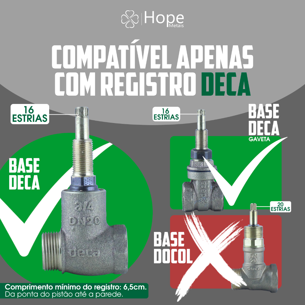 ACABAMENTO DE REGISTRO 50 MM GAVETA OU PRESSÃO DE 1 1/2 OU 1 1/4 PARA BANHEIRO CHUVEIRO OU REGISTRO GERAL 16 ESTRIAS METAL DOURADO GOLD GALVANIZADO. SOBRE O PRODUTO: O acabamento de registro tem a funcionabilidade de realizar a abertura e o fechamento do registro de pressão (chuveiros) e gaveta (geral de controle de fluxo de água). Além de nossos acabamentos serem referencia no mercado atualmente, eles vão levar elegância e sofisticação para seu banheiro. A peça chave que seu banheiro merece. ESPECIFICAÇÕES E COMPOSIÇÃO DO PRODUTO: 01- VOLANTE (MANOPLA) - METAL. 01- CANOPLA (BASE) - METAL. 01- APERTA CANOPLA - ABS. 01- CHAVE ALLEM - AÇO. 01- PARAFUSO ALLEM - AÇO. BITOLAS: 1 1/2" ou 1 1/4". MEDIDAS: VIDE FOTO. COMPATÍVEL COM REGISTROS: Deca, Hope Metais, Forusi, Bognar, Imperatriz, Leão Metais, Águia Metais, Pevilon Metais entre outros que seguem o mesmo padrão Deca de 16 estrias do pistão do registro. NÃO É COMPATÍVEL COM REGISTROS: Docol, Lorenzetti, Meber, Fabrimar ou qualquer outro fabricante que segue o mesmo padrão. DIFERECIAIS DO NOSSO PRODUTO: - O acabamento Nº 1 Do Brasil O MAIS VENDIDO! - Melhor acabamento do mercado. - Material resistente e de alta durabilidade. - Proporciona elegância ao seu ambiente. NOSSOS DIFERENCIAIS: - Preço de fábrica. - Envio mais rápido do Brasil. - Equipe com grande experiência para melhor atendê-los. - Produtos a pronta entrega. RECOMENDAÇÕES: - Limpe periodicamente os produtos utilizando um pano macio com sabão neutro. - Contrate um profissional para a instalação. - Nunca use produtos abrasivos como alcalinos, ácidos ou solventes nos produtos. Confira nossa lista, ou entre em contato conosco, temos peças de reposição à pronta entrega e atendimento a qualquer momento.