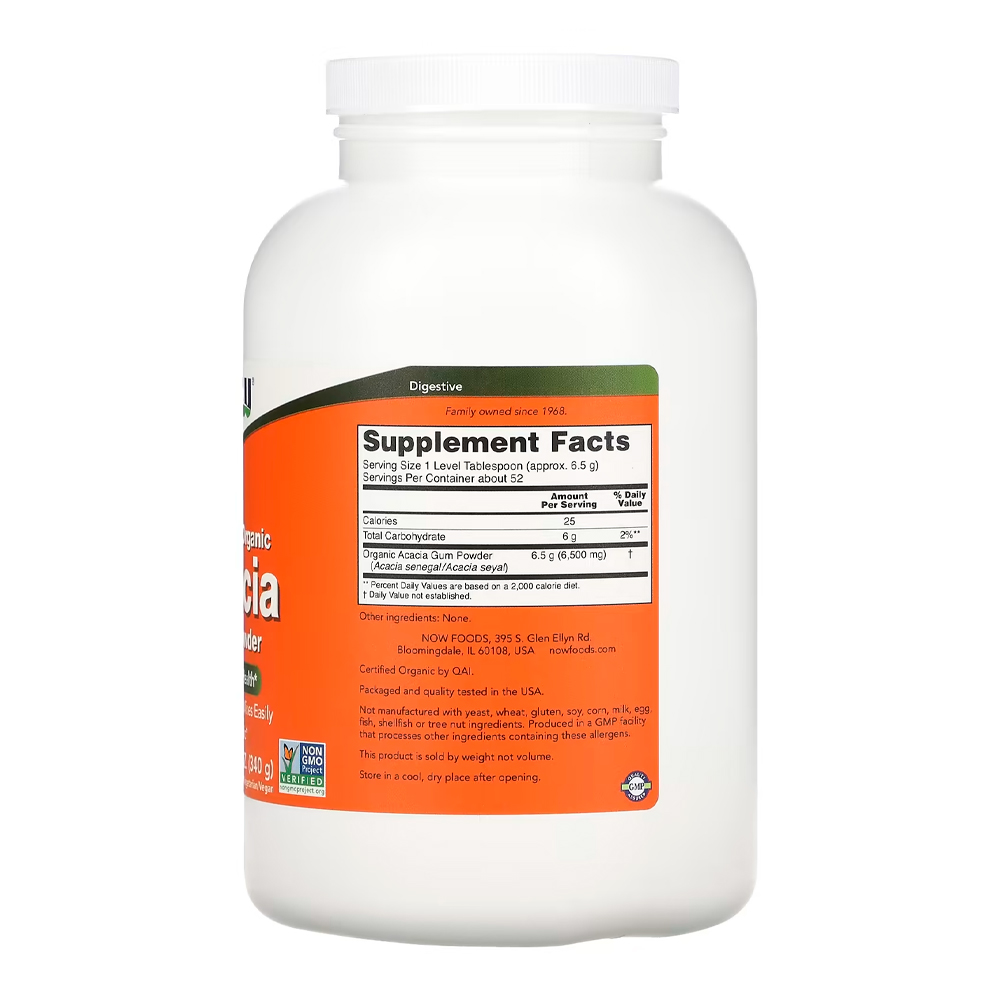 Acácia Pó Orgânico Now Foods 340g Puro + Porta Cápsulas