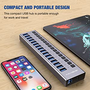 ACASIS 16 Porta USB 3.0 HUB Suporte BC1.2 Carregamento Com Adaptador De Energia 12V Divisor De Alumínio Para Acessórios De Macbook Desktop