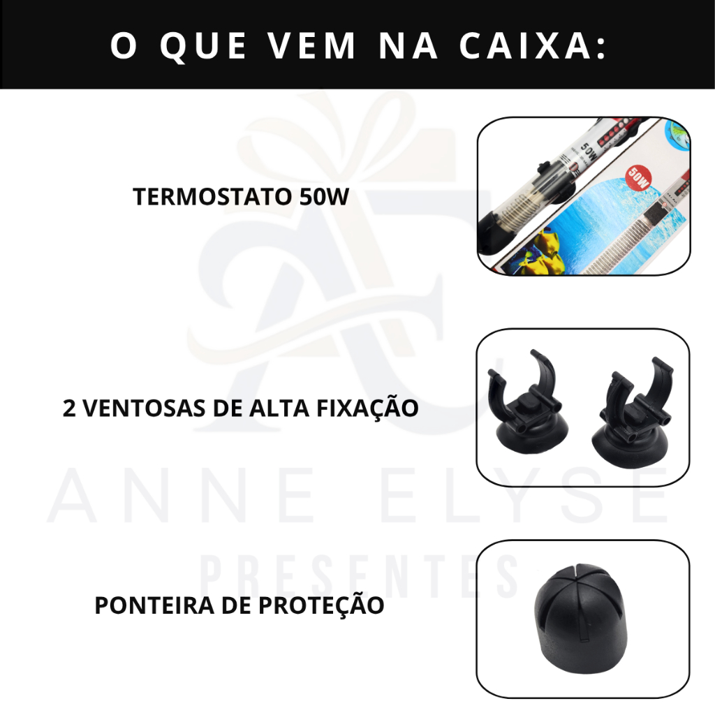 O Termostato Aquecedor AcePet 50W é a solução ideal para aquários de até 45 litros, proporcionando um ambiente aquático saudável e confortável para seus peixes e plantas. A marca Ace Pet é reconhecida pela qualidade de seus produtos, oferecendo confiança e segurança para os aquaristas. Transforme seu aquário em um ambiente ideal com o Termostato Aquecedor AcePet 50W e proporcione o melhor para seus habitantes aquáticos. CARACTERÍSTICAS PRINCIPAIS: - Acompanha ventosas para fixação. - Possui luz led vermelha que indica se o termostato está ligado e aquecendo a água. - Possui painel indicador de temperatura na parte frontal do produto - Fácil ajuste - Acompanha manual de instruções PRECAUÇÕES: - Seguir as instruções contidas no manual de instruções que acompanha o produto; - Deixá-lo COMPLETAMENTE submerso na água antes de ligar; - Após posicionar corretamente, aguardar 15min para ligar na tomada; - NUNCA retirar o termostato ligado do aquário, desligue da tomada e aguarde 30min antes de qualquer manutenção. INDICAÇÕES: Indicamos usar esse produto em aquários de 21 a 45L, garantindo o aquecimento até em regiões mais frias. DÚVIDAS FREQUENTES: O termostato pode ser posicionado na horizontal? R: Pode sim, desde que esteja completamente submerso na água.