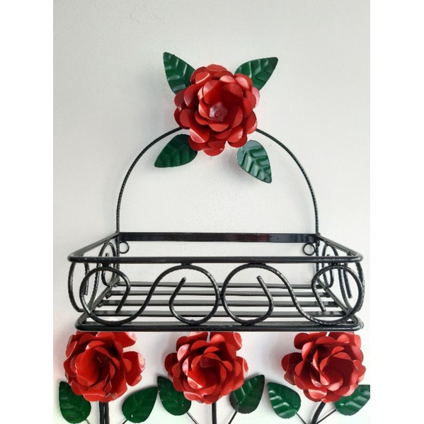 Kit Banheiro 4 peças vermelho. MEDIDAS: PORTA SHAMPOO: Altura: 28cm Comprimento: 29cm Largura: 15 cm. Observação: no momento dispomos apenas nas cores , Vermelha , azul e laranja. SABONETEIRA Altura: 22cn Comprimento: 17cm Largura: 8,5cm. CABIDE DE 2 GANCHOS Altura: 22cm Comprimento: 13,5cm Largura: 7cm. PORTA PAPEL HIGIÊNICO Altura: 20cm Comprimento: 14cm Largura: 7cm. O melhor do artesanato rústico mineiro,15 anos de tradição, empresa familiar e tudo feito à mão,empresa situada em Prados MG(Estrada Real)... Peça soldada manualmente e pintura eletrostática proporciona uma durabilidade melhor e contra ferrugens, acabamento todo manual, uma peça sem igual no mercado. Atenção: Imagem ilustrativa, podendo haver pequenas variações. Os produtos podem apresentar pequenas alterações na cor devido ao flash da câmera fotográfica, configurações dos monitores, configurações dos dispositivos móveis e lotes de fabricação do produto pelo fornecedor. Porém, garantimos que as características do produto (quantidade, peso, matéria prima e funções) não serão alteradas. Atenciosamente Arte Ferro Shop.
