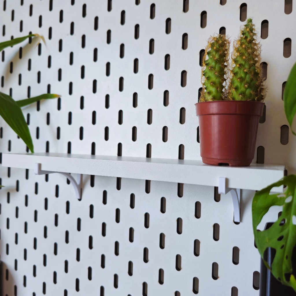 **ATENÇÃO** - Acessórios exclusivos para o nosso modelo de Pegboard - Compatíveis apenas com o nosso padrão de furação. - Não são compatíveis com modelos de furação redonda. **O painel Pegboard não está incluído no produto. Descrição dos itens: - Clip (2 unidades) Ideal para pendurar fotos, desenhos, lembretes tudo ao seu alcance. - Gancho Curvo (4 unidades) Ideal para cabos, colar, relógio, tesoura, óculos. - Gancho em L (4 unidades) Ideal para teclado, mouse, controle PS, Xbox, notebook - Organizador de Cadernos (2 unidades) Ideal para livros, cadernos, folhas e ajustável ao tamanho que preferir - Organizador de Fitas Ideal para pendurar fitas, etiquetas, whasi tap, etc... Tam: 24,5cm - Alfinete (4 unidades) Ideal para chaves, tesoura, cabos, uma infinidade de opções. - Potinho ou Potão transparente (1 unidade) Ideal para pen drive, keycaps - Suporte Headset (1 unidade) Ideal para guardar seu headset sem estragar a espuma do mesmo. - Prateleira 7cmx30cm (1 unidade) Ideal para pequenos vasos de plantas, funkos - Copinho (1 unidade) ou (2 unidades) Ideal para canetas, plantas ou outros objetos que quer ter à mão. - Organizador Multiuso (1 unidade) Ideal para organizar diversos produtos. - Suporte para tinta Ideal para armazenar suas tintas de forma organizada Favor adicionar cada item escolhido ao carrinho.
