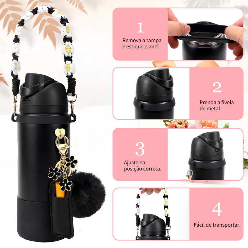 Descrição do Produto: Nossos conjuntos de acessórios para garrafas de água foram projetados para aprimorar sua experiência de hidratação, combinando estilo, praticidade e proteção. Seja para uso diário ou para atividades ao ar livre, esses acessórios tornam sua garrafa de água mais conveniente, segura e personalizada. Características: Capa de silicone estilosa: Disponível nos tamanhos de 693 ml e 944 ml, esta capa de silicone estilosa não só adiciona um toque de estilo à sua garrafa de água, como também proporciona uma pegada segura e a protege eficazmente contra impactos e arranhões do dia a dia. Pingente personalizado: O design exclusivo do pingente complementa seu estilo pessoal e complementa perfeitamente os acessórios da sua garrafa de água, combinando praticidade e estilo. Alça de transporte versátil: Carregue sua garrafa de água facilmente sem se preocupar com quedas ou vazamentos, proporcionando máxima conveniência a qualquer hora e em qualquer lugar. Capa de borracha durável: Projetada especificamente para os modelos de 693 ml e 944 ml, evita que sua garrafa escorregue, mantém a estabilidade e prolonga sua vida útil. Alça de Transporte Resistente: Feita com materiais de alta qualidade, esta alça de transporte elegante e durável revolucionará a maneira como você carrega sua bebida, tornando-a a escolha ideal para quem valoriza praticidade e design. Feita à mão com detalhes requintados: A alça tecida à mão é lavável e reutilizável; a fivela de metal banhada a ouro é à prova d'água e durável; a capa de silicone no calcanhar tem 2,1 mm de espessura; e a alça reforçada e aprimorada previne efetivamente quebras. Especificações do Produto: Dimensões da embalagem: 9 x 9 x 5 cm Aproximadamente 105 gramas cada Material: Silicone, metal Cores: Preto, branco, rosa, roxo Capacidade disponível: 24oz, 32oz (24oz compatível com copos Sta-Ley do mesmo formato) Inclui: 7 peças (copo não incluído; consulte a imagem das especificações com atenção) Nosso conjunto de acessórios para garrafa de água não é apenas versátil, mas também elegante, tornando-o a escolha ideal para aprimorar sua experiência diária de hidratação. Compre agora e dê um visual totalmente novo à sua garrafa de água! Considere uma margem de 1 a 2 cm para medições manuais. Devido a diferenças entre monitores, as imagens podem não refletir a cor real do item. Obrigado.