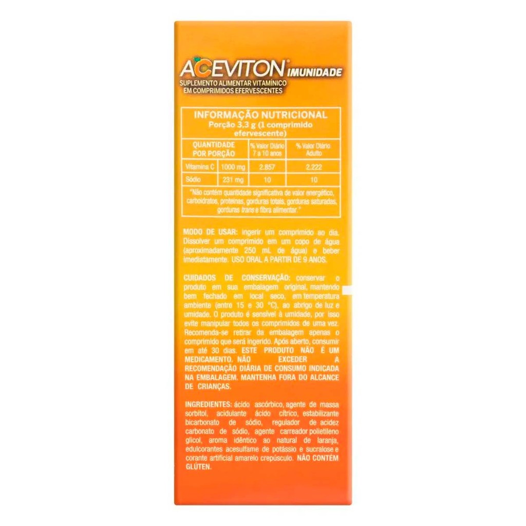 Aceviton 1g 3 Tubos x 10 Comp Efervecentes Suplemento Alimentar Vitamina C 1g Laranja Zero Açúcar Aceviton Imunidade Caixa 30 Comprimidos Efervescentes Sendo 3 Tubos com 10 Comprimidos Cada Para fortalecer o sistema imunológico. Modo de Preparo: Dissolver um comprimido em um copo de água (aproximadamente 250ml de água) e beber imediatamente. Ingredientes: Ácido ascórbico, agente de massa sorbitol, acidulante ácido cítrico, estabilizante bicarbonato de sódio, regulador de acidez carbonato de sódio, agente carreador polietileno glicol, aroma idêntico ao natural de laranja, edulcorantes acessulfame de potássio e sucralose e corante artificial amarelo crepúsculo.