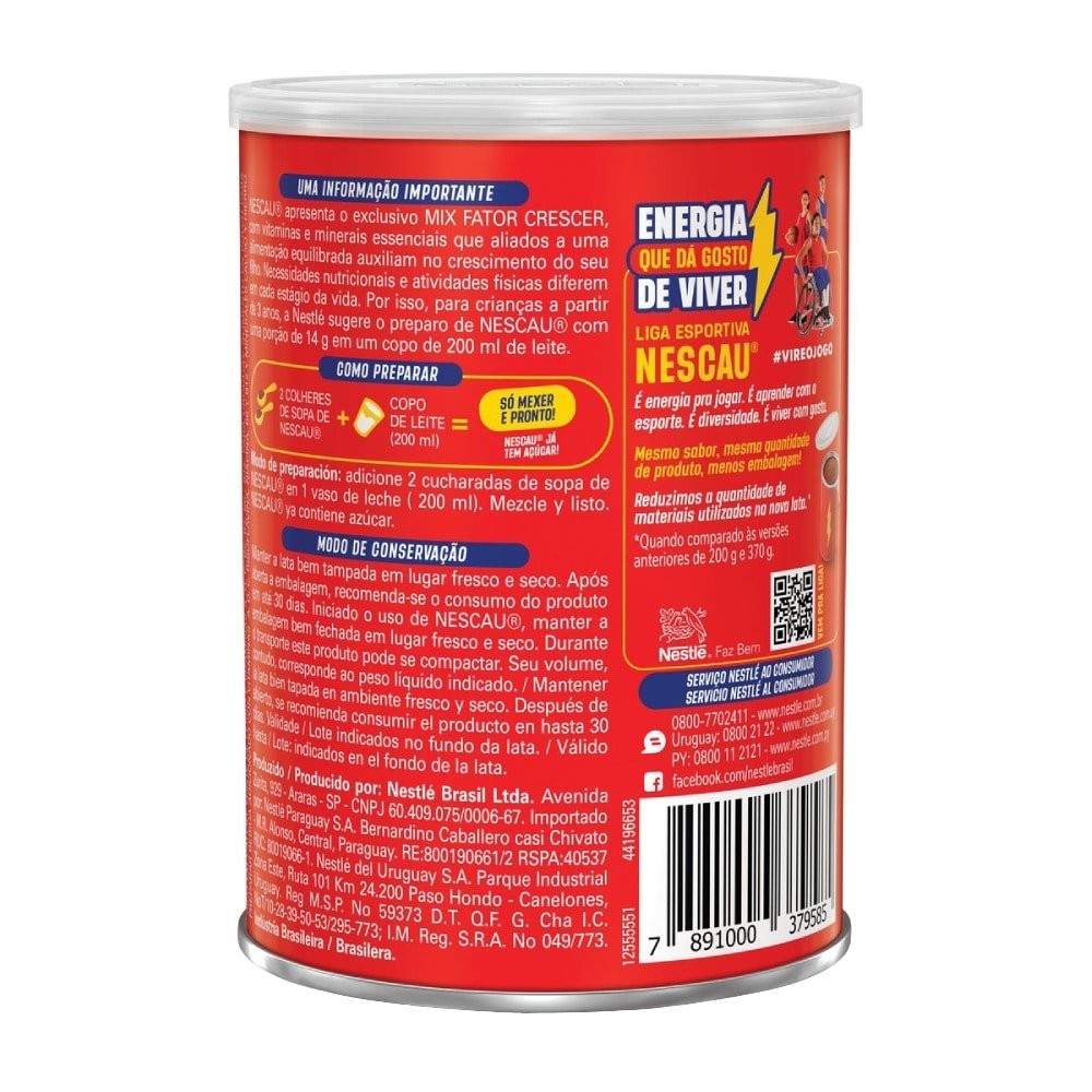 Características do Produto Marca: Nescau Peso Líquido: 200g Achocolatado Fator Crescer Especificações Gerais do Produto: 67% Cálcio 63% Vitamina B12 48% Vitamina B2 (Riboflavina) 28% Vitamina A Mix de vitaminas + mineiras Fornecedor: Nescau