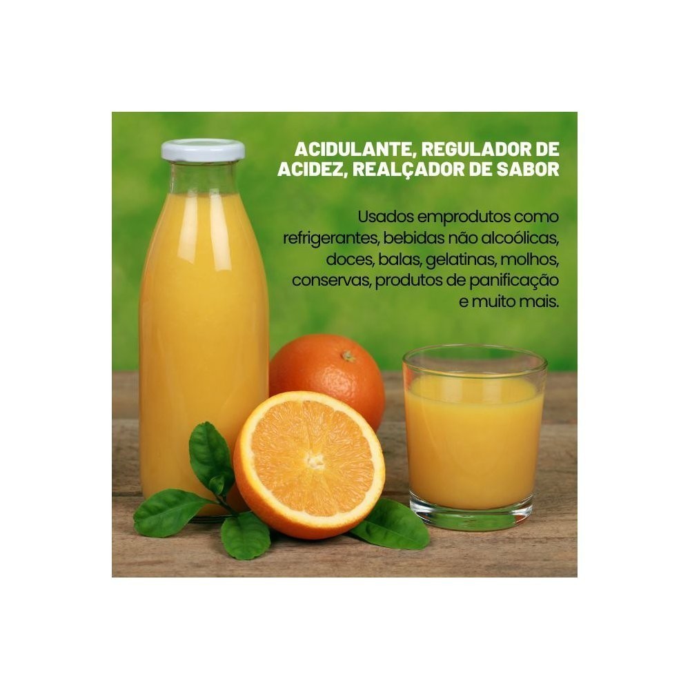 "POSTAMOS EM ATÉ 24H" Produtos de alta qualidade, 100% puros e sem adição de outros ingredientes. Embalagem segura em pote fechado com tampa vedante, garantindo a qualidade e praticidade do uso do produto. O ácido cítrico anidro é amplamente utilizado na indústria alimentícia como acidulante, conservante e antioxidante. Sua aplicação é diversificada, sendo encontrado em uma variedade de produtos, como: * Refrigerantes * Sucos * Doces * Geléias * Molhos * Conservas * Produtos de panificação * Entre outros Além de contribuir para conferir sabor e acidez aos alimentos, o ácido cítrico anidro também atua na preservação da cor, no retardamento da oxidação e na inibição do crescimento de microrganismos indesejados, prolongando a vida útil dos alimentos. Sua dosagem e aplicação devem ser cuidadosamente controladas para garantir a segurança e a qualidade dos produtos finais.Sua ação como regulador de acidez também é fundamental em processos de conservação e fermentação. Na Sauce Alimentos, oferecemos ácido cítrico anidro de alta qualidade, garantindo a pureza e eficácia necessárias para suas formulações profissionais. Conte com o ácido cítrico anidro para elevar a qualidade e o sabor de seus produtos alimentícios, mantendo-os frescos e seguros para consumo. Aplicações:O ácido cítrico tem uma ampla gama de aplicações, incluindo:Indústria Alimentícia: É amplamente utilizado como acidulante, regulador de acidez e realçador de sabor em produtos como refrigerantes, bebidas não alcoólicas, doces, balas, gelatinas, molhos, conservas, produtos de panificação e muito mais.Indústria de Bebidas: É um componente fundamental em bebidas carbonatadas, como refrigerantes, onde ajuda a equilibrar o sabor doce e a efervescência.O ácido cítrico anidro também é amplamente utilizado fora da indústria alimentícia, sendo empregado na limpeza e lavagem de roupas. Sua ação como agente quelante e removedor de manchas o torna eficaz na remoção de resíduos de sujeira e calcário, deixando as roupas mais limpas e brilhantes. Por ser uma substância natural e biodegradável, o ácido cítrico anidro é uma opção segura e sustentável para a limpeza doméstica.