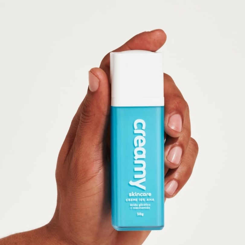 O que é? O ácido glicólico é um renovador celular facial em creme com 10% de ácido glicólico. Atua para retexturizar a pele por meio da esfoliação química. É o tratamento facial ideal para a prevenção e correção dos primeiros sinais de envelhecimento. Renova as células enquanto garante uma hidratação profunda, além de potencializar a absorção dos demais tratamentos. Uniformiza a textura e o tom da pele. Formulado para hidratar, esfoliar e iluminar a pele do rosto e do pescoço, o glicólico da Creamy suaviza e previne os sinais do envelhecimento, promovendo uma aparência e textura mais suaves. Por meio da renovação celular, este creme estimula a produção de colágeno. nas camadas mais profundas e ajuda a reparar o dano causado pela idade, pelo sol e pelas agressões do dia a dia. Contém Vitamina B3 (Niacinamida), ativo que melhora a barreira cutânea, tem atividade clareadora e propriedades seborreguladoras. Contribui para a melhora de manchas da pele, redução do excesso do brilho e prevenção de acne.