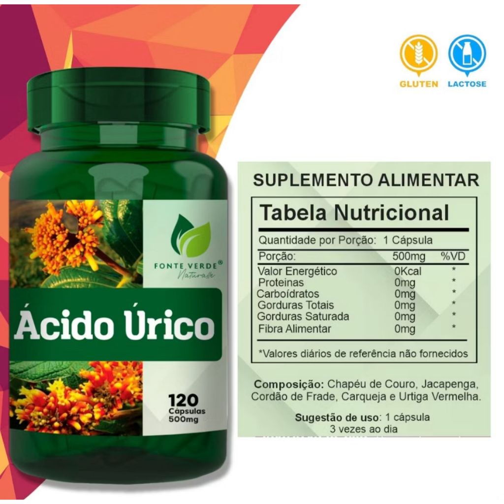| Ácido Úrico 120 capsulas 500mg - Fonte Verde Naturalle este produto | R$ 44,99 | 10% | 4.7/5 | 6 |
