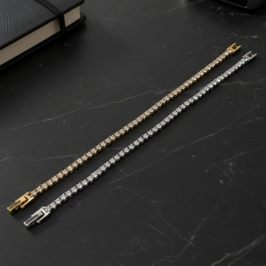 PULSEIRA RIVIERA EM AÇO INOX Design limpo. Visual marcante. Estilo sem exagero. ✔ AÇO INOXIDÁVEL ✔ NÃO ESCURECE ✔ RESISTENTE À ÁGUA ✔ BRILHO PREMIUM ✔ ACABAMENTO DE JOIA Chama atenção na medida certa. Não é comum. Não é exagerada. Combina com tudo: casual ou social. Ideal para quem busca ESTILO e PRESENÇA no visual. 📏 MEDIDAS APROXIMADAS • Espessura da pedra: 3mm • Comprimento: 18 cm (tamanho único e fixo) • Fecho: GAVETA • Material: AÇO INOXIDÁVEL