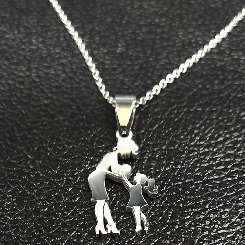 Aço Inoxidável Feminino Elegante , Bonito E Simples Mãe Filha Titânio Ouro Pingente Colar Jóias Acessórios