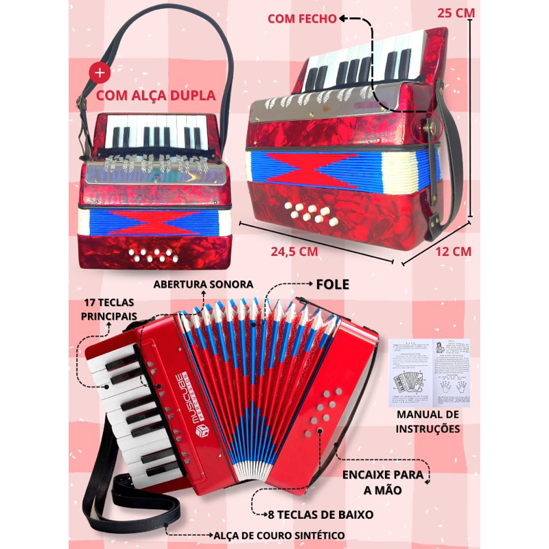 Acordeon Sanfona Gaita Infantil 8 baixos acordeão musical