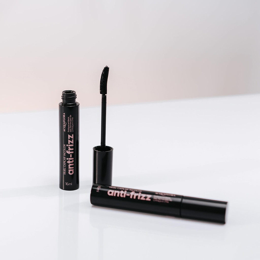 Acquaflora Anti Frizz Incolor - Rímel Capilar 16ml Rímel Capilar desenvolvido com Polissacarídeos das Sementes de Linhaça e Chia ricos em ácidos graxos, proteínas, vitaminas, minerais, gomas e mucilagens: modela os fios, abaixa o frizz instantaneamente, hidrata, repõe nutrientes e proporciona uma fixação forte e duradoura. Livre de corantes, parabenos, sal, óleo mineral, vaselina e essência. No poo e low poo. Cruelty free. Conselho de Aplicação Aplicar uma pequena quantidade do rímel nos fios arrepiados, com o auxílio do pincel, realizando movimentos no sentido do penteado. Utilize também para modelar baby hair. Não enxaguar.
