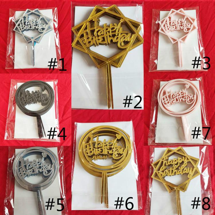 Acrílico Feliz Aniversário Bolo Topper 10 Peças Conjunto Decoração De Festa Ouro Prata Preto