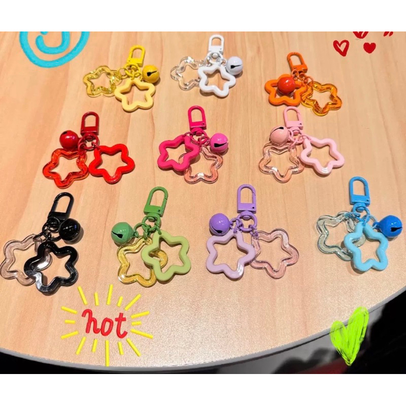 Acrílico Oco Estrela de Cinco Pontas Chaveiro Pingente Sino Decoração Colorido