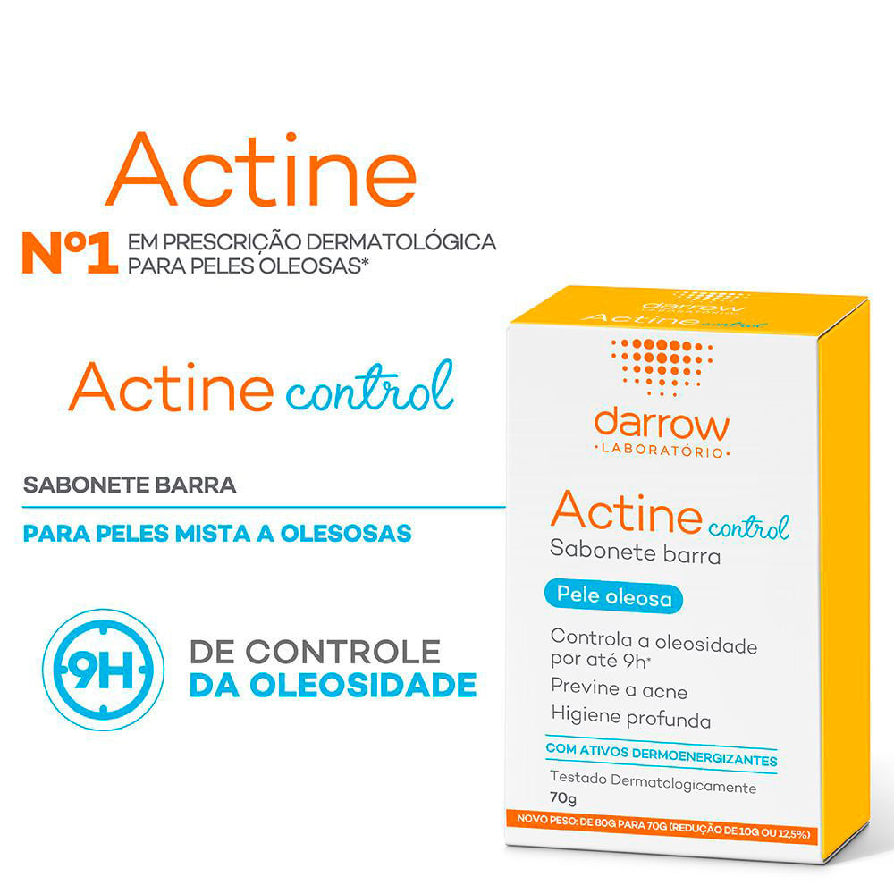 DARROW ACTINE CONTROL SABONETE EM BARRA- SABONETE EM BARRA PARA PELES MISTAS A OLEOSAS Actine é a linha de produtos para peles oleosas mais prescrita pelos dermatologistas brasileiros! Actine Control