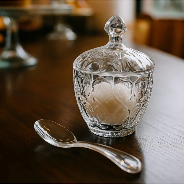 Açucareiro de Vidro com Tampa e Colher - Modelo MADRID Mek 10,8cm