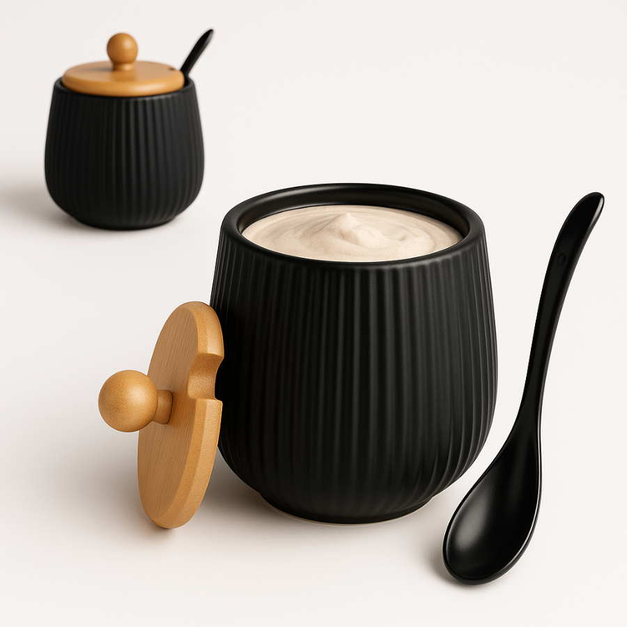 Açucareiro Em Porcelana Com Colher Tampa Bambu 360ml Oásis