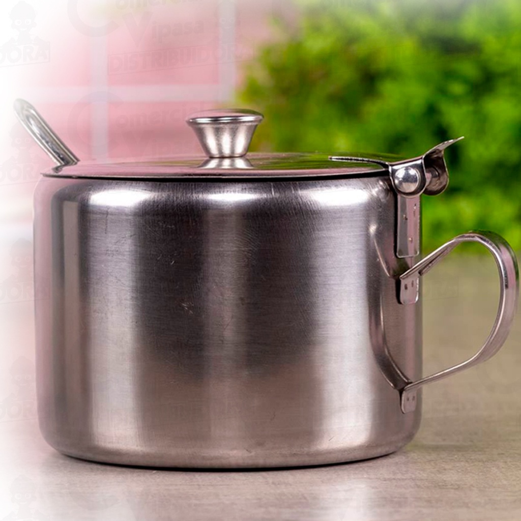 Açucareiro Luxo Em Aço Inox Cromado Profissional Com Tampa Alça Casa Cozinha Design Moderno