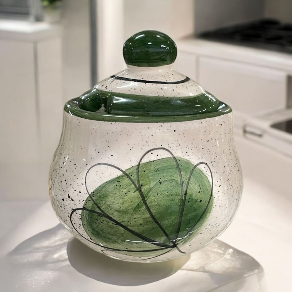 Açucareiro Redondo Pintado á Mão de Cerâmica