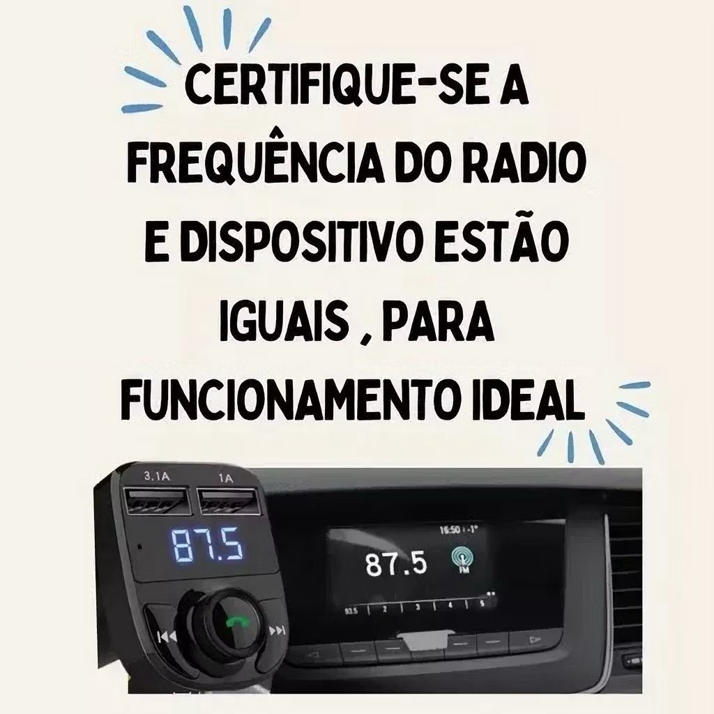 ADAPTADOR BLUETOOTH VEICULAR Com esse adaptador você consegue: - Carregar seu celular - Transmitir via Bluetooth o som de suas músicas pelo celular, Spotify, Youtube, etc. - Suas músicas gravadas no Pendrive de até 32 Gb. - Atende o celular, evitando multas. • Excelente qualidade de som com solução de DSP para cancelamento de eco. • Supressão de ruído (CVC). • Disco de suporte USB. • Aplicar a dispositivos USB e MP3 player. • Suporte MP3/WMA formato de música. • Transmitir o áudio sem fio para o rádio, fácil de usar. ESPECIFICAÇÕES • Bluetooth Versão: V3.0+EDR • Distância de transmissão: 5M • Frequência: 87,5-108.0 MHZ • Frequência Estabilidade: ± 10PPMi • Frequência de saída: 20HZ-20KHZ • Tensão de alimentação: 12-24V • Saída USB carregador: 5V/2.1A, 5V/1ª • Formato de música: MP3, WMA Formato • USB (suporte máximo): 32GB • MP3 S/N• RATIO: 60-70dbm MP3 BITRTE: 32KPB-320KPBS • SNR: 80Db PRINCIPAIS DÚVIDAS Quando meu pedido será enviado ? O envio é feito em até 24 horas úteis, nossos produtos são enviados bem embalados, protegidos com plástico bolha e demais proteções sem risco de chegar danificado na sua casa! Qualquer outra dúvida? Nos chame no CHAT DA LOJA que vamos te atender!
