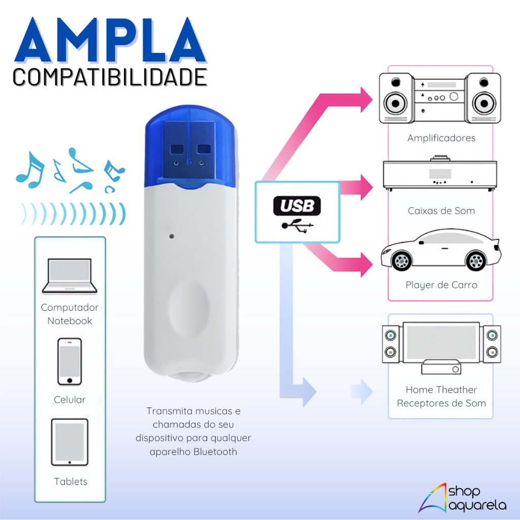 Adaptador Bluetooth USB Para Carro Fácil Pareamento Áudio Limpo Sem Interferências