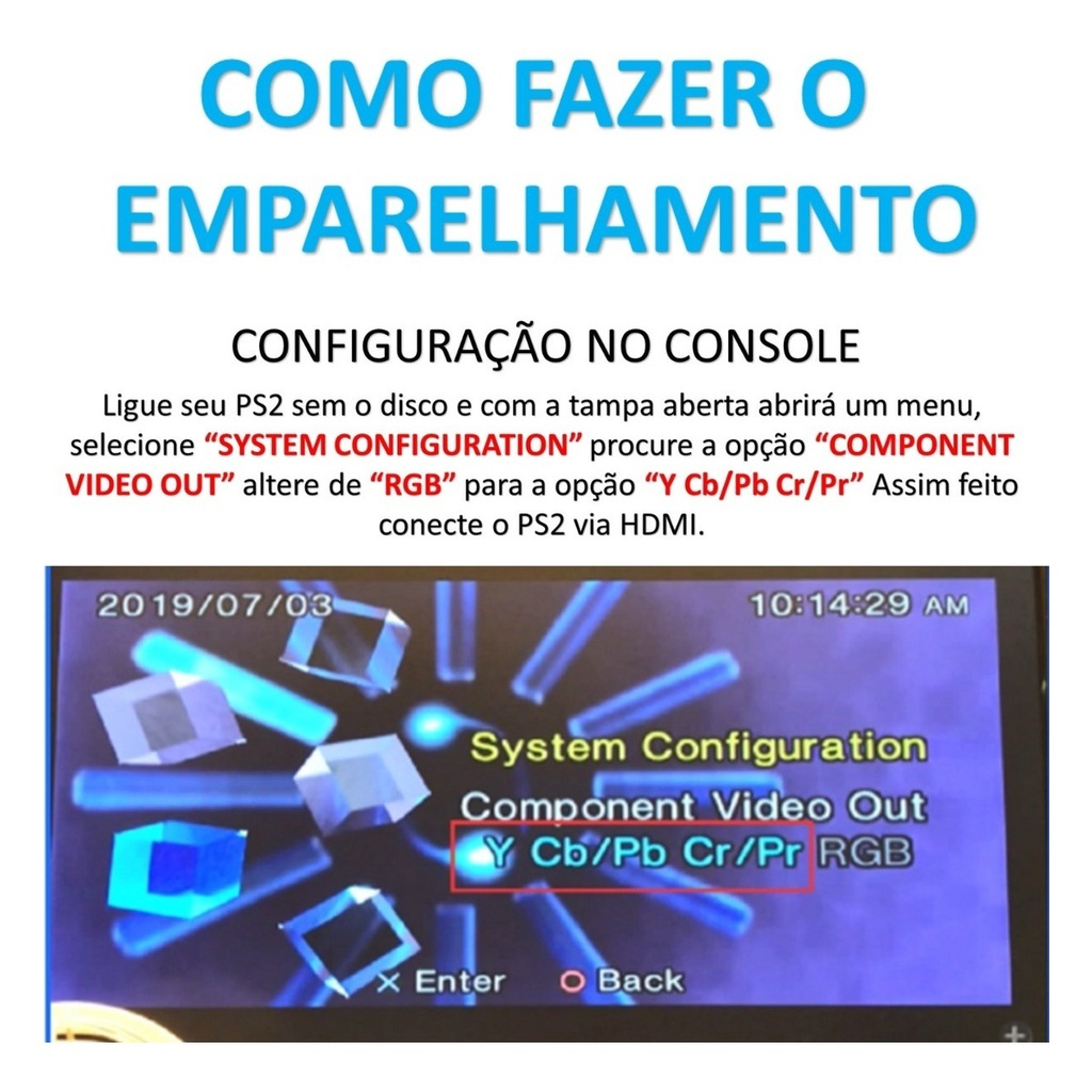 PRONTA ENTREGA !!! ..................... ENVIO IMEDIATO! PRODUTO 100% ORIGINAL PS2 CONVERTER ..................... CONVERSOR HDMI PARA PLAYSTATION 2 PS2 (não serve no ps1) - FULL HD 1080P - TRANSMITE AUDIO E VIDEO - FÁCIL INSTALAÇÃO - PEQUENO E PORTÁTIL - FUNCIONA EM TV/MONITOR/PROJETOR Passo a passo para utilizar: 1. Conecte o adaptador no seu videogame; 2. Plugar o cabo HDMI na saída do adaptador e na sua TV; 3. Conectar o cabo USB no adaptador e em uma conexão USB de carregador; 4. Plugar o cabo P2 na saída de audio do adaptador e conectar na sua TV/caixa de som; 5. Pronto a imagem já deverá estar sendo exibida e o audio também. IMPORTANTE! PARA PODER FUNCIONAR O ADAPTADOR , ENTRE NAS CONFIGURAÇÕES DE SEU GAME E HABILITE A FUNÇÃO (YPBPR) VIDEO COMPONENTE, BASTA LIGAR O SEU VIDEOGAME SEM O DISCO E COM A TAMPA ABERTA, SELECIONAR A OPÇÃO "SYSTEM CONFIGURATION">"COMPONENT VIDEO OUT"> SELECIONAR A OPÇÃO "Y Cb/Pb Cr/Pr".(VER IMAGEM ANÚNCIO) PS2 HDMI CONVERTER é um conversor para o console Playstation 2, saídas de vídeo e áudio na íntegra com formato digital HDMI, suporta todos os modos de exibição do PS2 (480i, 576i, 480p) não compatível com sistema 4k. Com apenas um cabo HDMI Plug and Play para áudio e vídeo você terá os melhores efeitos em sua TV HD ou Full HD, ele aumenta a qualidade gráfica dos jogos, deixando o seu PS2 com qualidade muito melhor em sua TV. Características: • Vídeo e áudio em formato HDMI totalmente digital, sem perda de transmissão; • Funciona com monitor HDTV ou HDMI; • Sem complicações! Plug and play à medida que avança; • Suporta todos os modos de exibição ps2; • Sem adaptador de energia, sem cabos bagunçados - apenas um cabo HDMI; • Modo de entrada de vídeo suportados: 480i, 480p, 576; Parâmetros do produto: - Dimensões: 73x34x14mm - Peso líquido: 18g - Consumo de energia: abaixo de 1w - Modo de entrada de vídeo suportado: 480i, 480p, 576i - Conector de entrada: ps2 av multi out plug - Conector de saída de video: hdmi conector - Conector de saída de audio: 3.5mm de áudio estéreo jack Composição da Embalagem: 1X ADAPTADOR CONVERSOR PS2 PARA HDMI 1X CABO DE ALIMENTAÇÃO USB