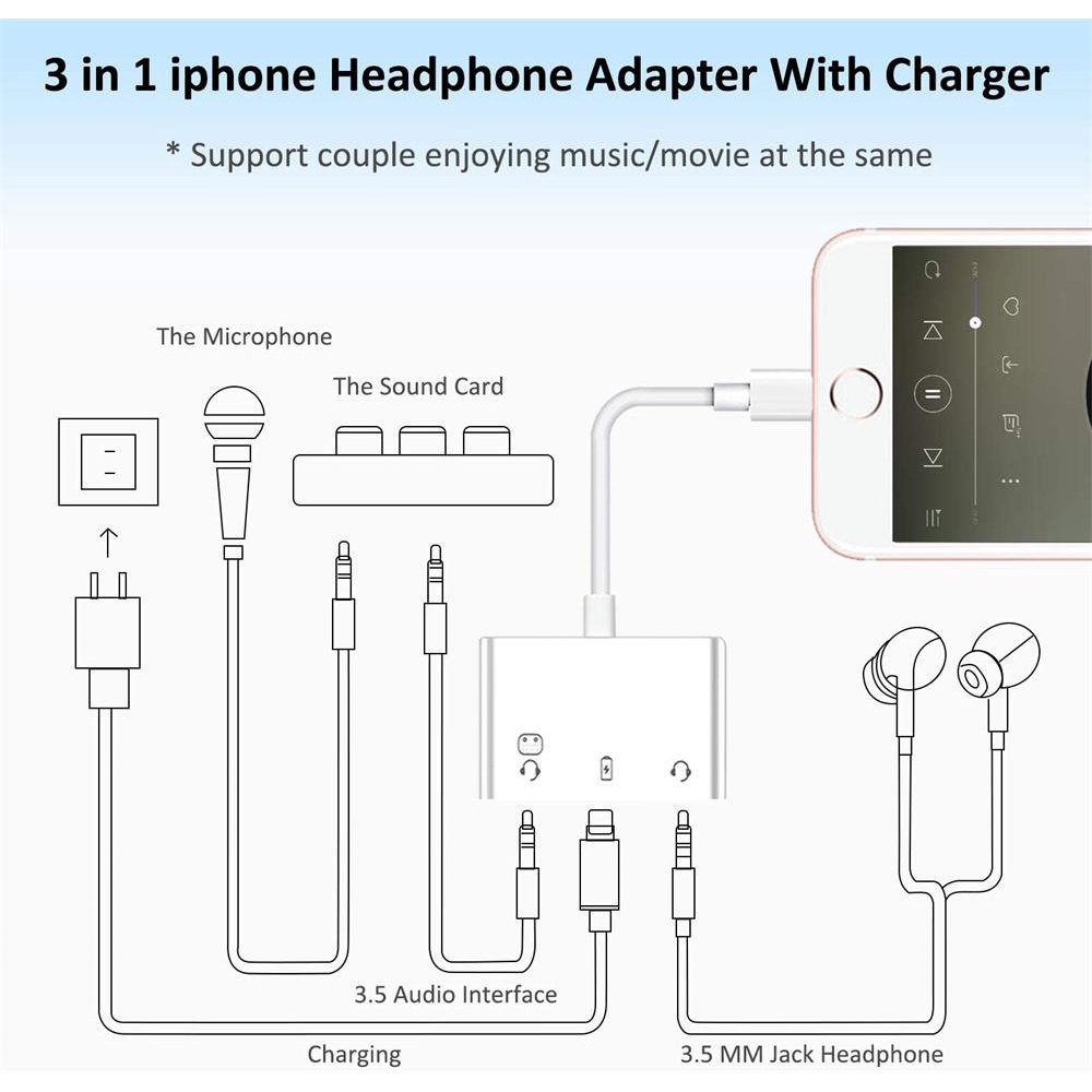 Adaptador De Áudio 3 Em 1 Relâmpago Para Microfone Suporte De Fones De Ouvido 3,5 Mm Jack In And Out Sem iPhone XS/11/12