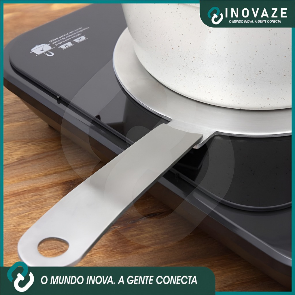 🔥 Adaptador Para Fogão de Indução 20cm Inox | Cabo Removível 🔧🍳 ✅ Compatível com Diversos Tipos de Fogão! O Adaptador para Fogão de Indução 20cm é a solução ideal para quem deseja utilizar panelas comuns (não indutivas) em fogões de indução, além de ser compatível com modelos a gás, elétricos, cerâmicos e de halogênio ⚙️🔥. Com ele, você aproveita todas as suas panelas favoritas sem precisar trocá-las. É economia 💰 e praticidade 🛠️ em um só produto! ⭐ Principais Benefícios: ✅ Distribuição uniforme de calor ♨️ ✅ Cabo removível para manuseio seguro 🖐️ ✅ Aço inoxidável de alta resistência 🛡️ ✅ Permite o uso de panelas de alumínio, inox, ferro, cerâmica, cobre e mais 🍲 📐 Especificações Técnicas: Marca: INOVAZE Diâmetro do disco: 20 cm Medidas totais (com cabo): 39 x 20 x 5,5 cm Peso: 580g ⚖️ Material: Aço Inoxidável Conteúdo: 1 Adaptador com cabo removível Cor: Inox escovado ✨ 🧑🍳 Modo de Uso: Posicione o adaptador sobre o fogão Coloque a panela sobre o disco antes de ligar Use somente panelas de fundo plano 🔲 Este disco serve apenas para transferência de calor, não cozinhe diretamente sobre ele 🚫🍳 ⚠️ Cuidados Importantes: ❗ Não toque na chapa logo após o uso – risco de queimadura ❗ Não despeje água fria no disco quente ❗ Utilize sempre com uma panela em cima ❗ O disco pode apresentar amarelamento com o tempo – é normal e não afeta o desempenho ❗ Não cozinhe diretamente sobre o adaptador 📝 Observações: Em fogões de indução, use panelas de fundo plano para melhor resultado Função principal: distribuir o calor uniformemente e evitar o cozimento irregular 🛡️ Garantia do Vendedor: 🗓️ 30 dias contra defeitos de fabricação