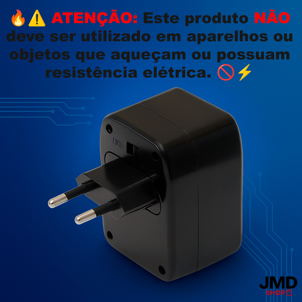 🔌 Conversor de Voltagem Bivolt 100W – Transforme 110V em 220V ou 220V em 110V com segurança! ⚠️ ATENÇÃO: Este conversor NÃO É COMPATÍVEL, independentemente da potência, com os seguintes aparelhos: Secadores de cabelo, chapinhas, geladeiras, adegas, televisores, cafeteiras, micro-ondas, liquidificadores, ventiladores, exaustores, furadeiras, umidificadores, climatizadores, cozidores de ovos, filtros de água, panelas elétricas, forno/fogão elétrico, impressoras, entre outros com alto consumo. Se estiver em dúvida, nos envie uma pergunta antes da compra! ✅ Indicado apenas para aparelhos de até 100W de potência Ideal para itens eletrônicos de baixa potência como pequenos carregadores, radios, luminárias, entre outros. 🔁 Função dupla: Transforma 110V em 220V Transforma 220V em 110V 📌 Especificações: Padrão de tomada brasileiro Tamanho compacto: 7cm x 5cm x 4cm Fácil uso com chave seletora de voltagem 📦 Conteúdo da embalagem: 01 Conversor de Voltagem Bivolt 100W 📘 Como usar corretamente: Se sua tomada for 110V e seu aparelho 220V, deixe a chave seletora em 110V Se sua tomada for 220V e seu aparelho 110V, deixe a chave seletora em 220V Garanta praticidade e segurança na hora de ligar seus aparelhos! 💬 Em caso de dúvidas, fale conosco antes da compra!