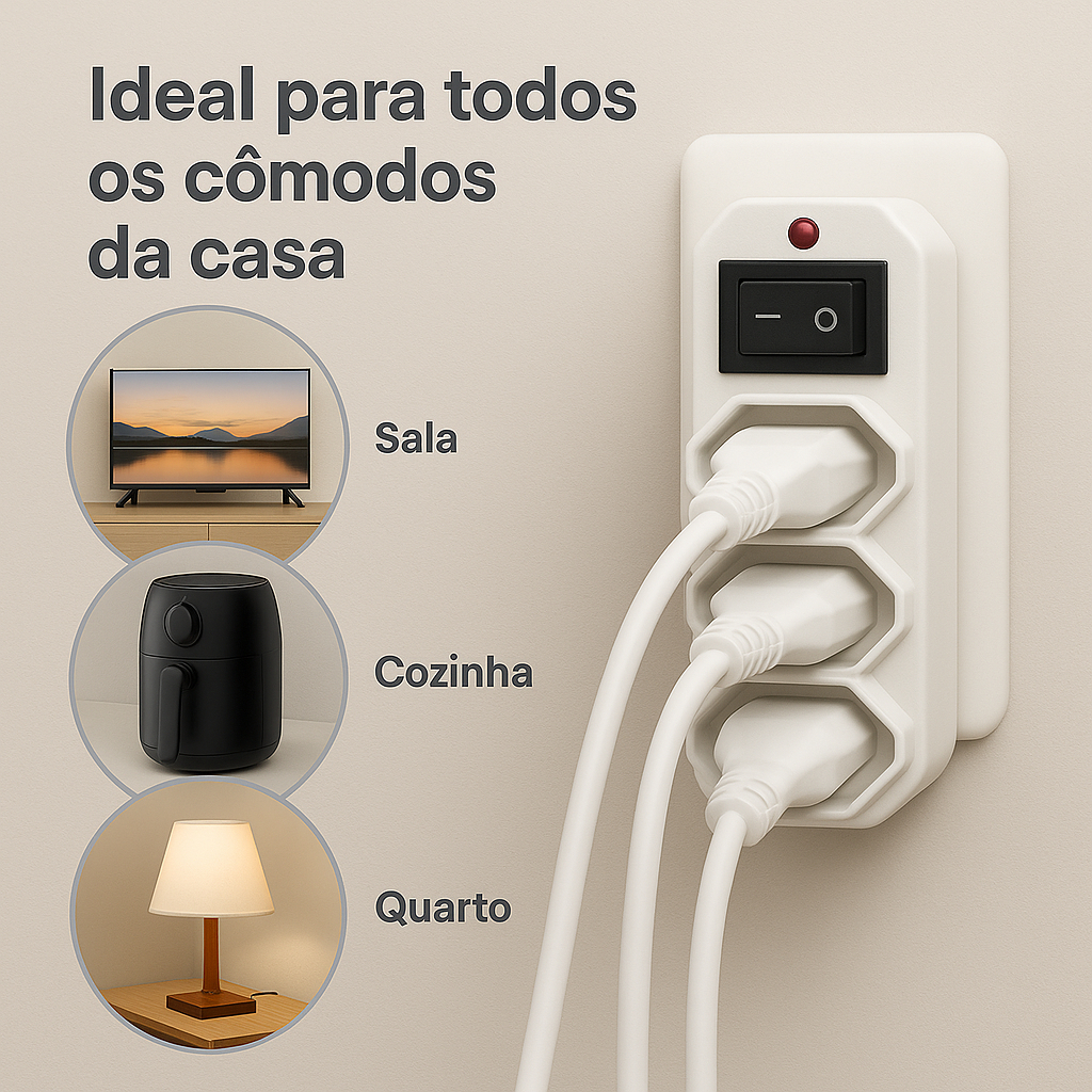 Adaptador De Tomada Benjamim 3 Saidas POWER 2P + T 10A 250V Plug Padrão 10 A