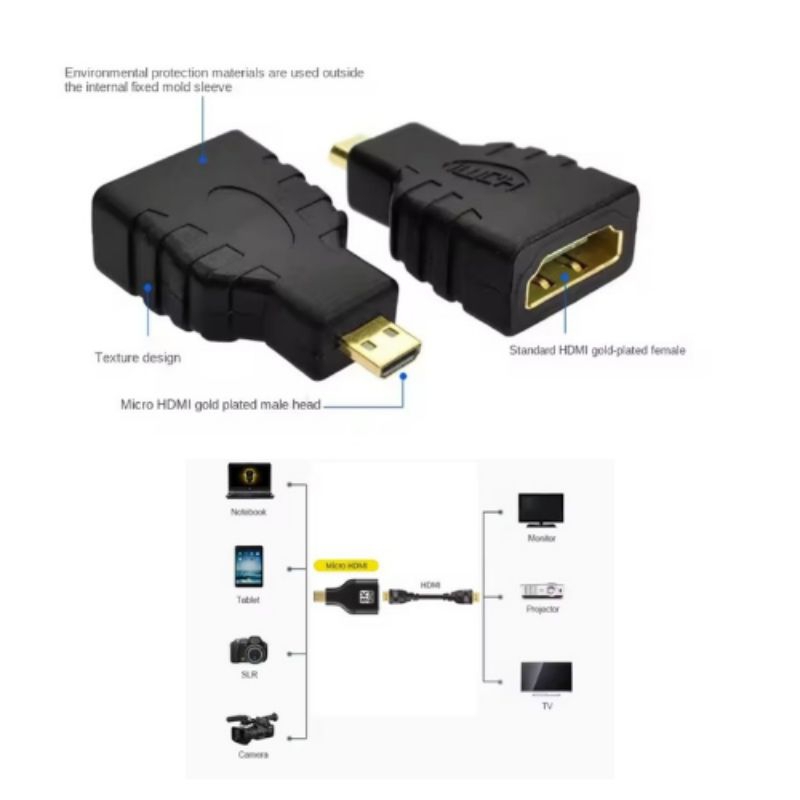 Adaptador HDMI Fêmea para Micro HDMI Macho Compatível com HDTV, monitores, notebooks e câmeras