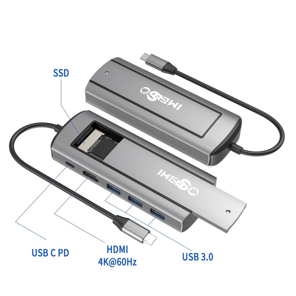 Adaptador Hub Imenso Original 3 Usb-a 3.0 Hdmi 4k 1 Type-c 1 Slot Ssd IMS-725