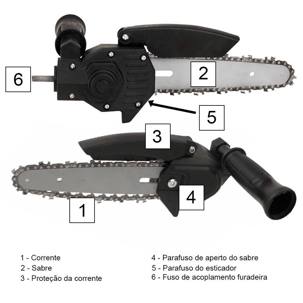Adaptador Motosserra Furadeira 6" Cortes Podas - Lynus