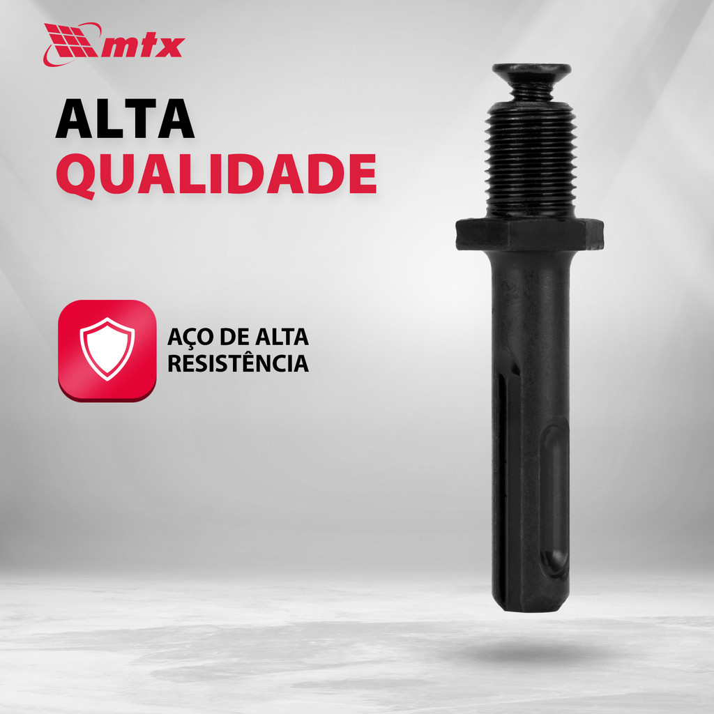 Adaptador SDS PLUS para Rosca M12 x 1,25 mm MTX 703579 Transforme seu martelo perfurador em uma ferramenta ainda mais versátil! O Adaptador SDS PLUS MTX 703579 permite que você instale mandris de aperto rápido e chaves com fixação rosqueada em martelos perfuradores. Ideal para usar brocas de metal ou concreto com haste cilíndrica, ele amplia as possibilidades do seu equipamento, tornando-o uma furadeira potente e adaptável para múltiplas tarefas. Principais Vantagens: Construção robusta: Aço temperado de alta resistência garante durabilidade e confiabilidade para uso intenso em ambientes exigentes. Fixação segura: A haste SDS-Plus se encaixa firme no mandril do martelo perfurador, evitando solturas durante o trabalho. Parafuso de bloqueio exclusivo: Mantém o mandril firmemente preso, proporcionando maior segurança e evitando interrupções inesperadas. MTX 703579: Mais eficiência e versatilidade para seu martelo perfurador, ideal para profissionais e entusiastas que buscam performance e segurança em cada projeto.