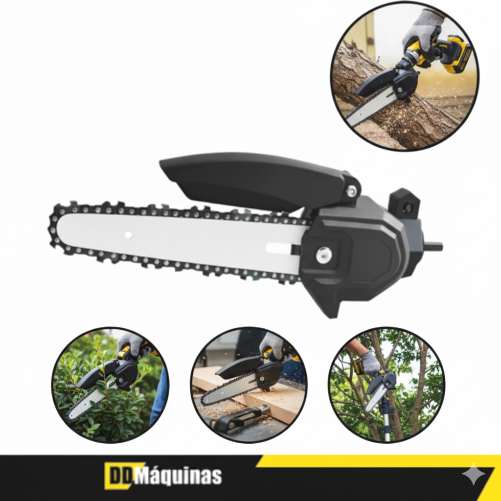 ADAPTADOR P/ FURADEIRA 6" PARA CORTES E PODAS AFL-6 - LYNUSDESCRIÇÃO DO PRODUTOO Adaptador motosserra para furadeira 6" AFL-6CP da Lynus é ideal para prática de pequenos cortes e podas.De fácil montagem, acoplagem e manuseio, pode ser utilizado tanto em furadeiras como em parafusadeiras.Projetado para fazer pequenas podas e abates de galhos e árvores de até 150 mm de diâmetro onde o mesmo é adaptado em uma furadeira elétrica obtendo seu maior rendimento e funcionalidade também podendo ser adaptado em uma parafusadeira a bateria que devido a sua menor rotação não terá a mesma eficiência que a furadeira.O AFL-6CP da Lynus possui 6" de comprimentoCARACTERÍSTICAS- Corrente: onde terá atrito com a madeira para efetuar o corte- Sabre: onde é inserido a corrente para efetuar o corte- Proteção de corrente: peça que faz a proteção para evitar o contato com a corrente- Parafuso de aperto do sabre: onde é feito o aperto do sabre- Parafuso do esticador: onde ao girar apertamos ou afrouxamos a corrente e o sabre- Fuso de acoplamento: onde inserimos no mandril da furadeira acoplando a mesma tornando-se assim usual.DADOS TÉCNICOS- Comprimento do sabre: 152 mm- Capacidade de corte: até 150 mm.ITENS INCLUSOS- 1 chave allen- 1 empunhaduraTERMOS DE COMPRA1 - Entrega via Shopee por transportadora.2 - Prazo de Postagem é de até 48hs, validos apenas para dias úteis após a compra.3 - O prazo de entrega informado no ato da compra é apenas um prazo estimado e não leva em consideração o prazo de postagem (item 2), podendo haver atrasos por parte da transportadora.O prazo de entrega informado é feito pela Transportadora da Shopee e não por nós. Faça o acompanhamento da sua compra para se certificar que nós postamos o seu produto no prazo informado no item 2.4 - Todas as imagens são meramente ilustrativas;5 - Caso o endereço esteja incorreto, o produto irá voltar e o pagamento será devolvido.6 - É importante que se for necessário escolher alguma variação, escolha o Tamanho/ Modelo / Cor / Voltagem imediatamente7 - Nossos produtos são originais e acompanham nota fiscalGarantia de 6 meses pelo fabricanteImagens meramente ilustrativas