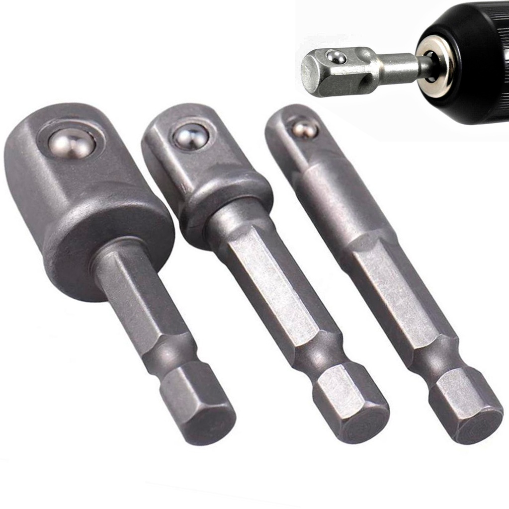 Adaptador Para Parafusadeira Furadeira Soquetes 1/4" 3/8" 1/2Pol. Pontas Bicos Kit Com 3 Peças